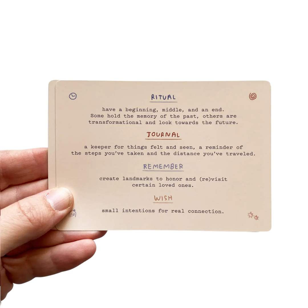 Created by Carissa Potter of People I’ve Loved in collaboration with Madeline Park & Marcella Biven of ______ LESS, Sitting With Sadness is a deck designed to help you process grief and mourning at your own pace. This 52-card deck can help you navigate hard days and sleepless night — when you worry about forgetting, but remembering hurts too much.