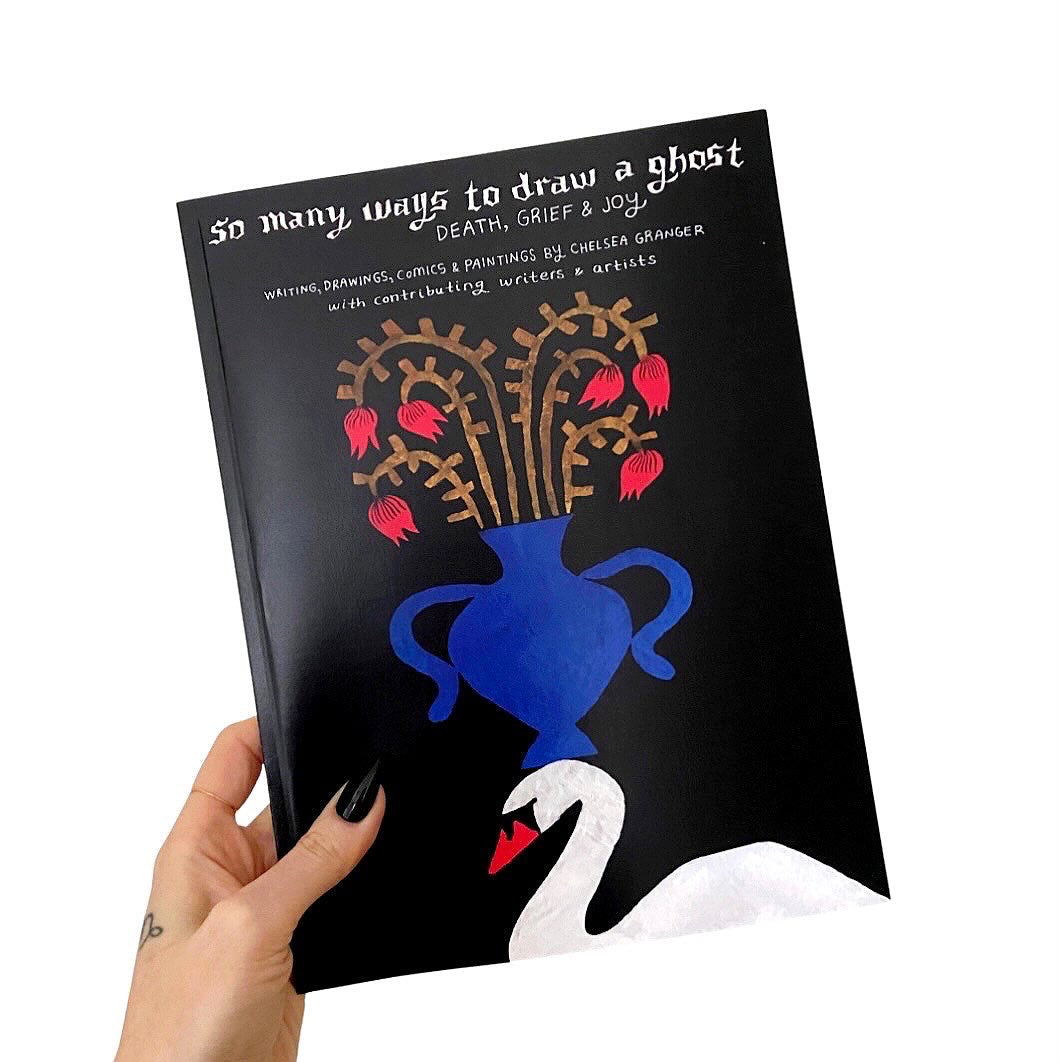 So Many Ways to Draw a Ghost is a book about death, grief, and joy with writing and artwork by Chelsea Granger and a collection of contributing writers & artists who have come to know death intimately. It’s a powerful collection of essays, poems, paintings, illustrations, photographs, prayers, and rituals meant to honor the unbearable heartbreak of grief.